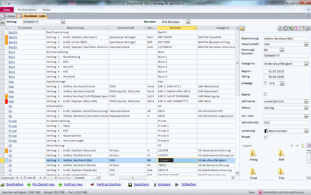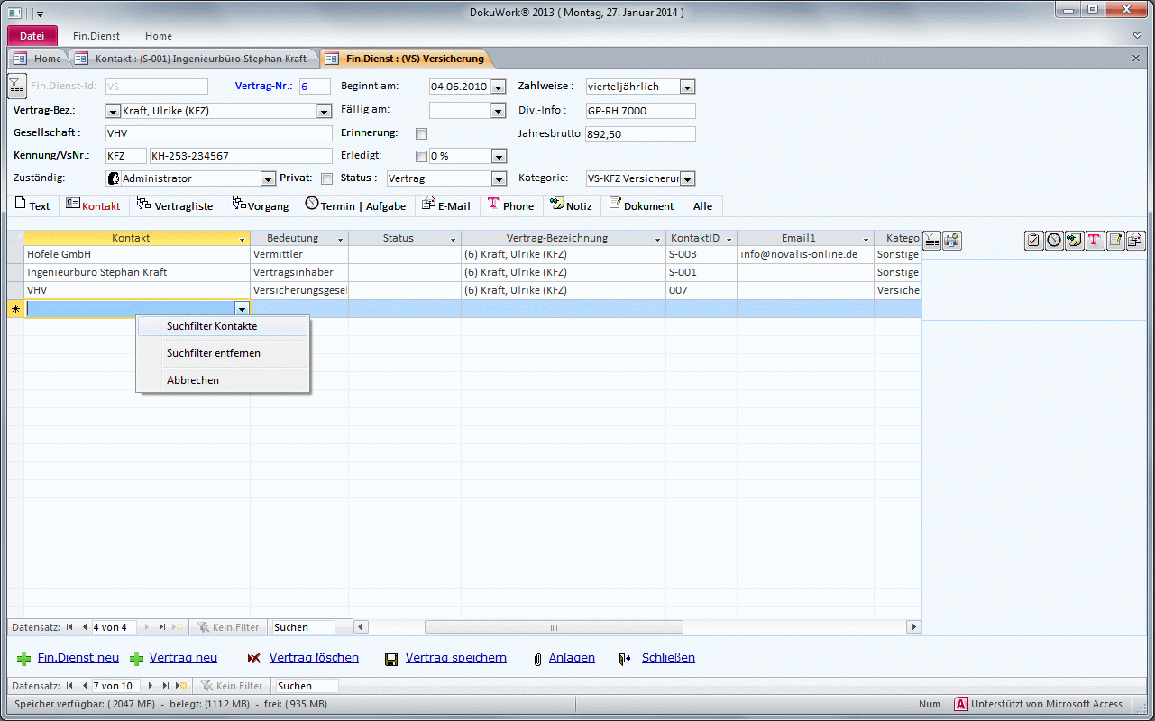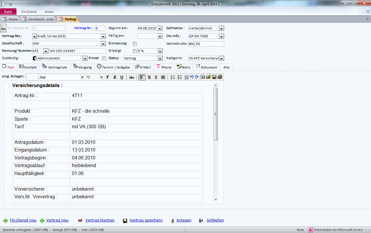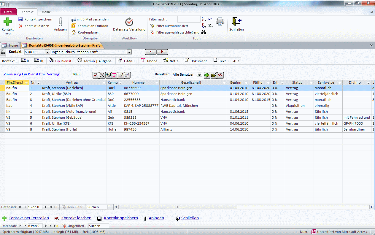Die DokuWork-Branchenlösung für Versicherungs- und Finanzdienste zeigt eindrucksvoll, was sich aus der "normalen" DokuWork Anwendung mit sehr geringem Programmieraufwand alles machen lässt.
